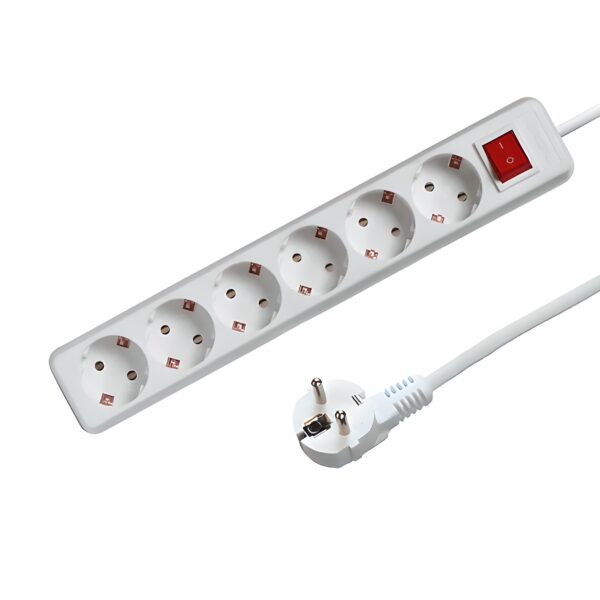 Deze 6-voudige tafelcontactdoos biedt ruimte voor het aansluiten van meerdere apparaten, ideaal voor werkplekken of kleinere ruimtes. De 1,5 meter lange kabel zorgt voor voldoende bewegingsvrijheid, terwijl de ingebouwde schakelaar het mogelijk maakt de stroomvoorziening eenvoudig aan of uit te zetten. De witte uitvoering maakt deze contactdoos een praktische keuze voor diverse omgevingen.