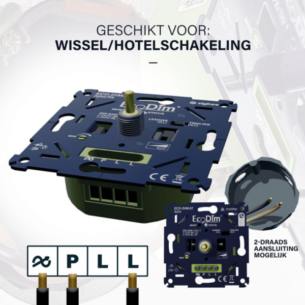 - 2-draads aansluiting (geen nuldraad of bypass vereist)