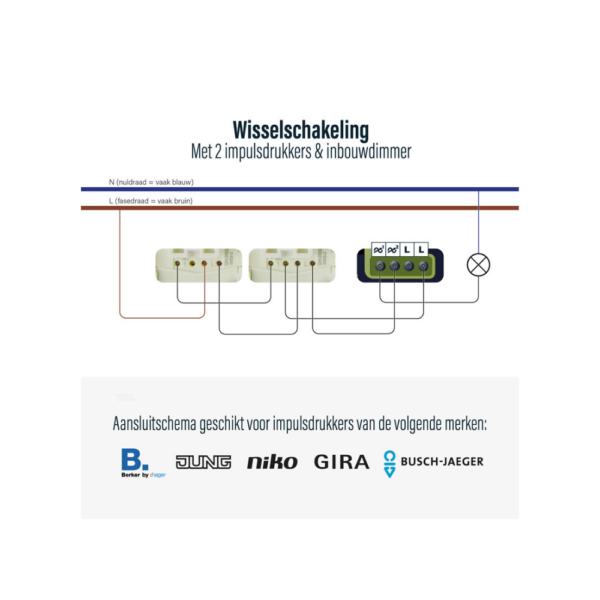 ✓ Geschikt voor wisselschakeling met pulsdrukker