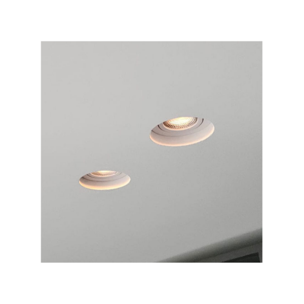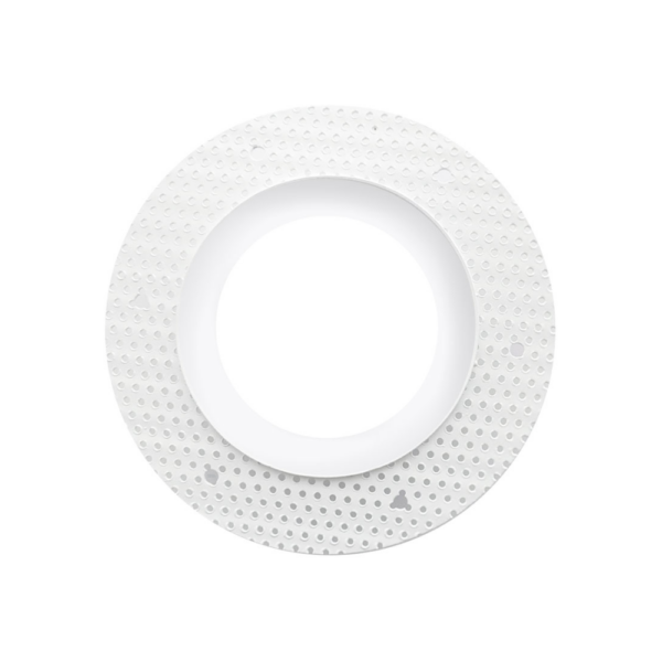 Dit inbouwarmatuur is ervoor gemaakt om inbouwspots in een gestuct plafond te verwerken. De inbouwspots met een buitenmaat van Ø85mm passen in dit frame. Tijdens het stucen kan dit frame in het plafond verwerkt worden door de stucadoor.