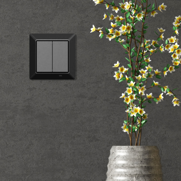 Deze draadloze slimme schakelaar is in de kleur zwart en naast het eigen inbouwraampje ook te gebruiken in een GIRA 55 systeem.