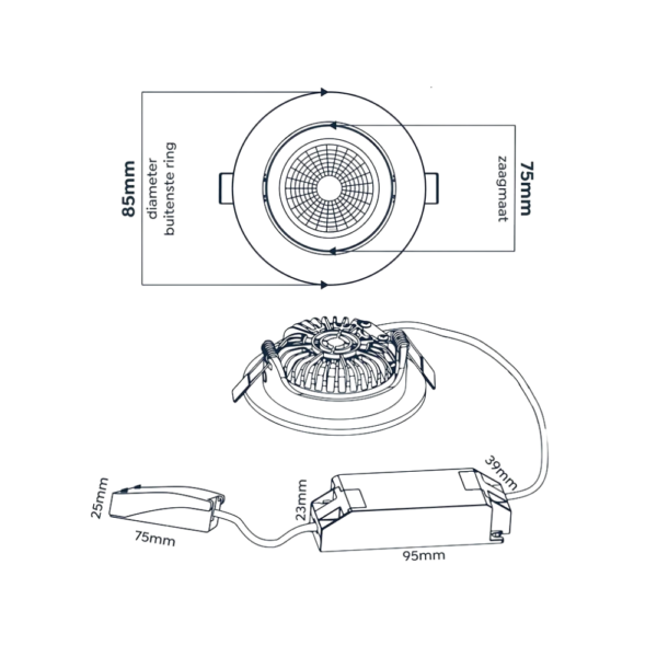 Belangrijkste eigenschappen van deze zwarte, ronde led inbouwspot zijn de IP54-waarde (spatwaterdicht), de kleine inbouwdiepte (23mm) én de uitstekende dimbaarheid. Uniek is de compacte lasdoos met dubbele klemconnector wat het eenvoudig en veilig maakt om een parallelschakeling te realiseren. Uitstekend dimbaar met alle EcoDim led dimmers.