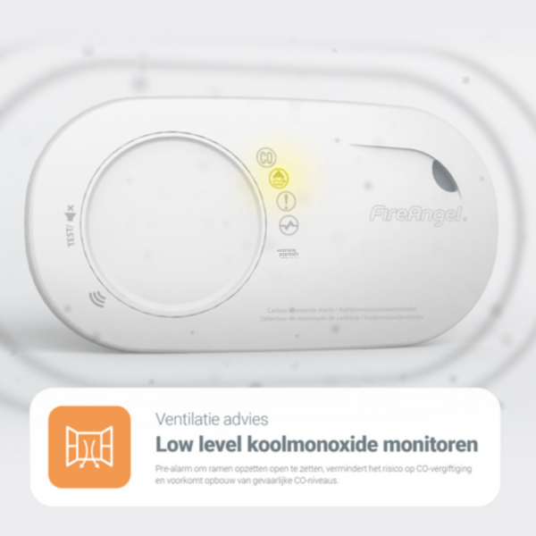 - Ventileer functie: waarschuwing bij lage CO-concentraties
