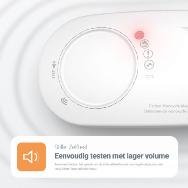 - Stille testfunctie ondersteunt testen op een laag volume in vergelijking met standaard koolmonoxidemelders.