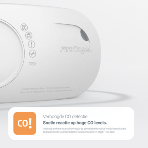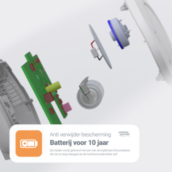 - Koolmonoxidemelder met een levensduur van 10 jaar