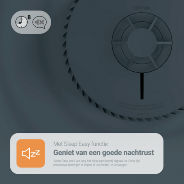 • Sleep Easy ‒ stopt het bijna-leeg-batterij-signaalgedurende 8 uur.