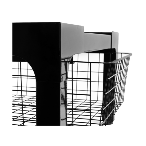 De uitschuifbare draadmand is ruim en stevig, ideaal voor dagelijkse wasbenodigdheden of los wasgoed.