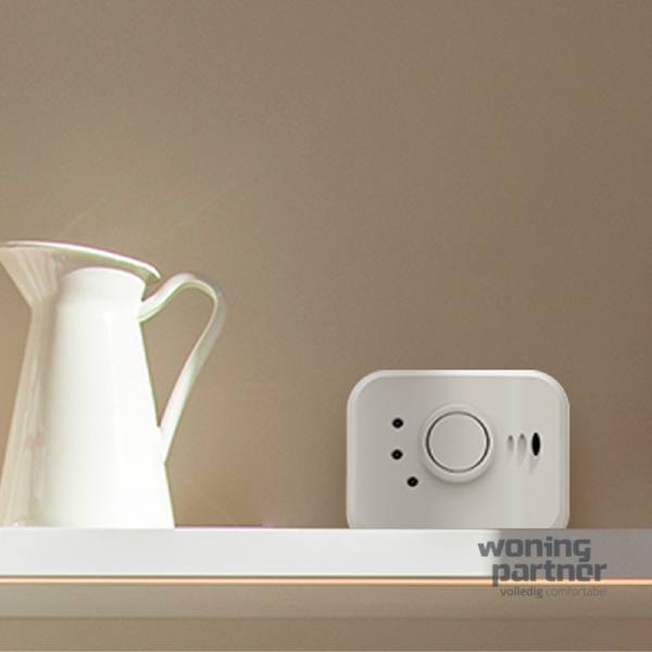 Koolmonoxidemelder, 3VDC, Opbouw, Wit, IP20, Test-/pauzeknop, Low level CO-niv <<35ppm/8u, Batt 10jr niet verv, Aansturing CV-Vent, Optioneel comm naar Zigbee e.a.